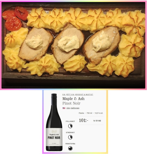 Svaret blir,,ingenting>> Det blev en planka i stället..Jag hade en låda kvar av den helstekta fläskytterfilén,så den fick det bli,en planka med mos några minitomater och bea sås,smakade alldeles utmärkt..I glaset hade jag ett rött från Kalifonien,druvan Pinot noir även vanlig i Oregon, Chile och på Nya Zealand. Det var inte så tokigt det heller,,kan nog hamna i glaset igen..