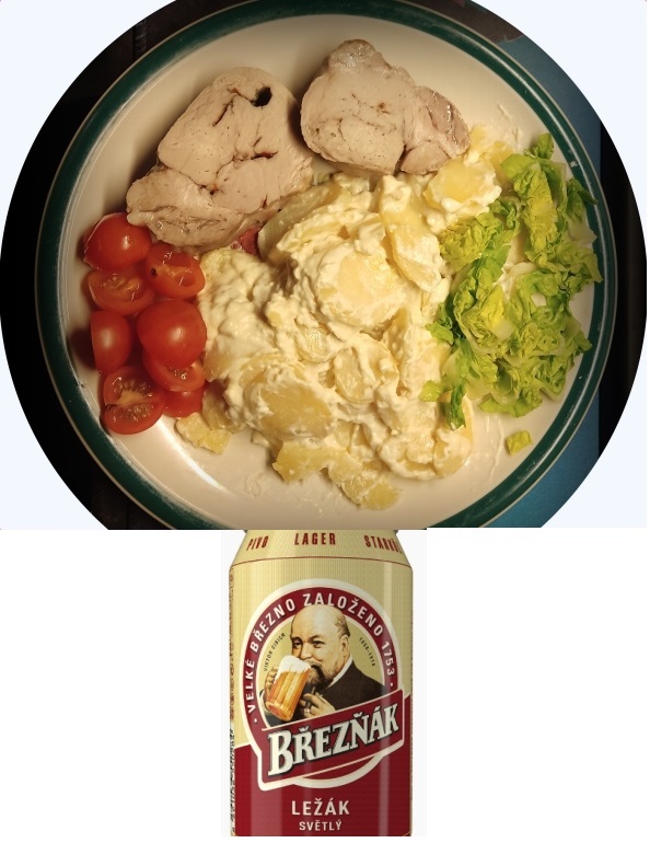 Nu sitter jag mätt och belåten och ser hur kvicksilvret kryper nedåt i termometern-16 just nu,men prognosen säger att snart vänder det uppåt. Vad hade jag på tallriken idag,jo potatisgratäng,ugnstekt fläskytterfilé och lite grönt..I glaset den goda Tjeckiska ölen Breznak.Smakade utmärkt..