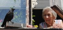 Tror säkert att dagen firas även där uppe i Himlen..Här en bild från 2011.. Mamma har en liten pratstund med en av sina matgäster på fönsterbrädan.