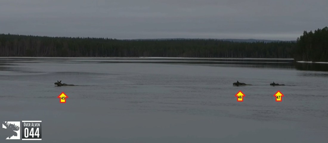 Till nu har 43 Älgar simmat över älven dessa två i dis och dimma.