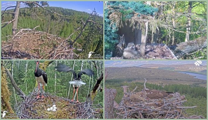 Kollade även hur läget är vid de 4 fågelbon jag följer..Havsörnarna i Lettland verkar ha det tufft,boet är mest tomt,men tidigt i morse var Milda och Zorro i boet en stund..Hos Berguven i Estland,där växer ungen fort..Det Svarta Storkparet Urga och Orgis i Lettland sköter om sina ägg tillsammans,har kollat bakåt 1:a ägget lades 17/4 därefter kom äggen med 2 dagars mellanrum,så kläckning kommer att ske tidigast omkring 20/5..Fiskgjuseparet Dorcha och Louis sköter om sina 3 ägg tillsammans,kan inte se när äggen är lagda,när jag kom till boet den 20/4 låg där 2 ägg,,dom ruvas ca 5 veckor,