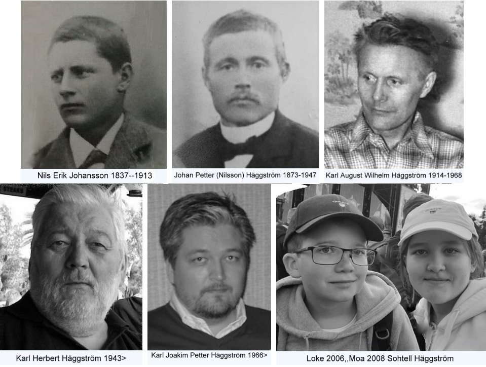 Nils Erik har samisk härkomst..Sonen Johan Petter uppmanade att byta namn när han gjorde rekryten (fanns många Nilsson),det blev Häggström efter byn Häggås som var hans hemby..Mina barnbarn har både mammans och pappans efternamn Sothell-Häggström..