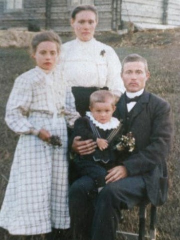 Farmor och Farfar faster Margareta och farbror Elias till vänster bilden tagen 1909…Till höger min far Karl,mamma Irma,Jag,min syster Gun,och min bror Inge,bilden tagen 1948.