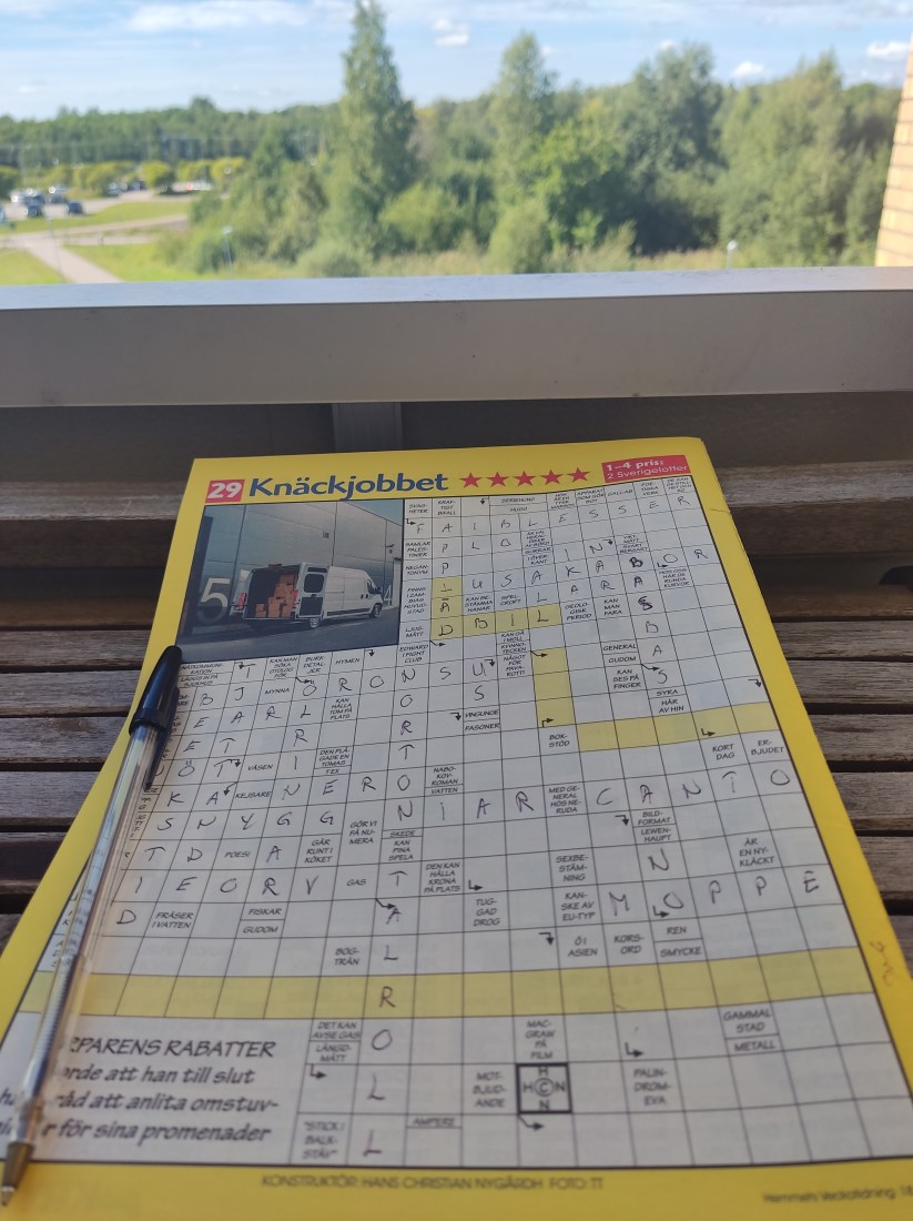 Sitter nu och brottas med mitt kryss,,svårt,,men nu går det trögt,,på riktigt. Men man får inte ge sig.