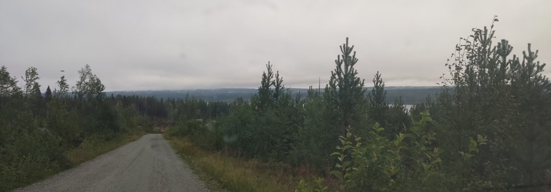 Startade från stugan kl 14:00 efter ca 10 km kan jag se Ormsjön där nere i regndiset.Nu är det bara 2 mil till den efterlängtade surströmmingen..När jag kom till Avaträsk så kom solen också.