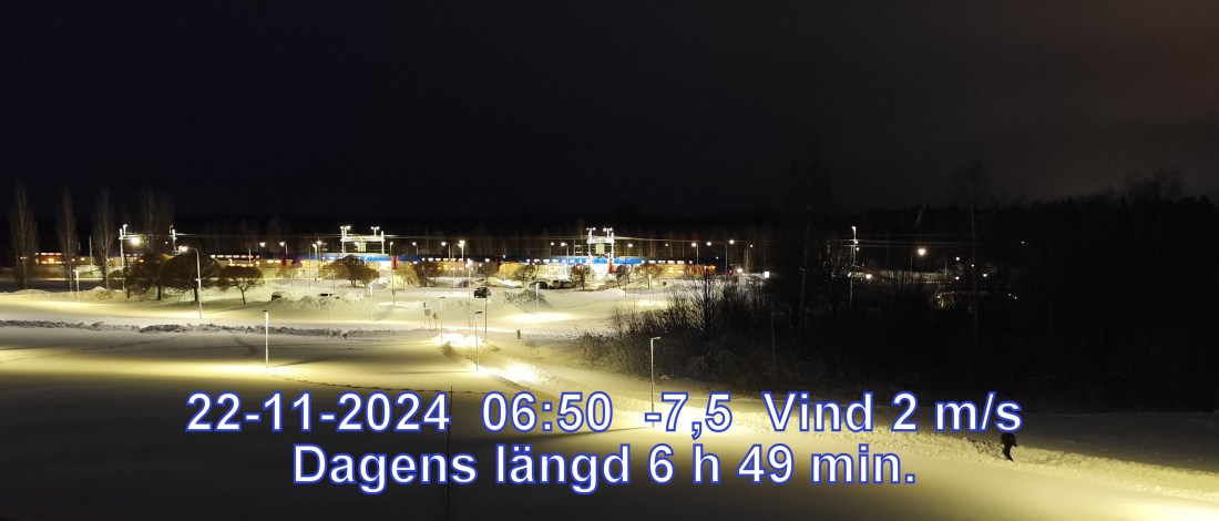 -7° C Vind 2 m/s Mulet, men troligen uppehåll Känns som-12° Lufttryck 982 hPa Daggpunkt-9° Fuktighet 87 % Soluppgång 08:11 Solnedgång 15:01 Dagens längd 6 h 49 min.
