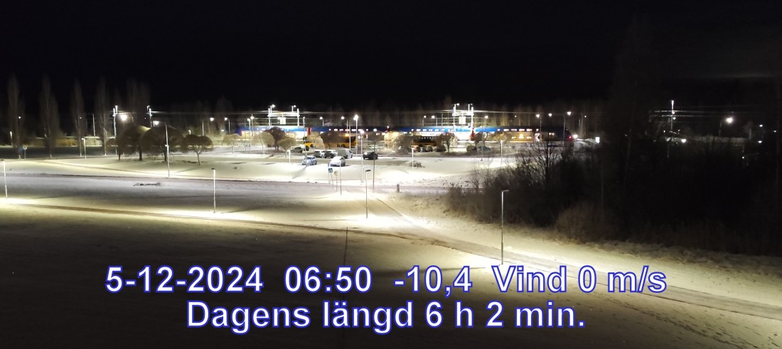 -13° C Vind 0 m/s Mest klart och uppehåll Känns som-13° Lufttryck 1027 hPa Daggpunkt-14° Fuktigh 89 % Sikt 50000 m Soluppgång 08:39 Solnedgång 14:42 Dagens längd 6 h 2 min.