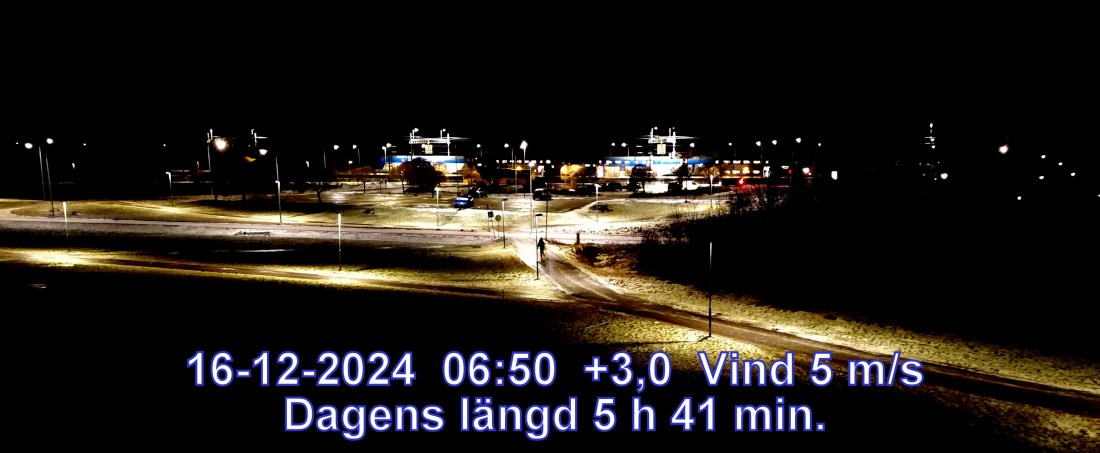 +4° C Vind 5 m/s Mulet, men troligen uppehåll Lufttryck 985 hPa Daggpunkt-2° Fuktighet 61 % Sikt 50000 m Soluppgång 08:55 Solnedgång 14:37 Dagens längd 5 h 41 min.