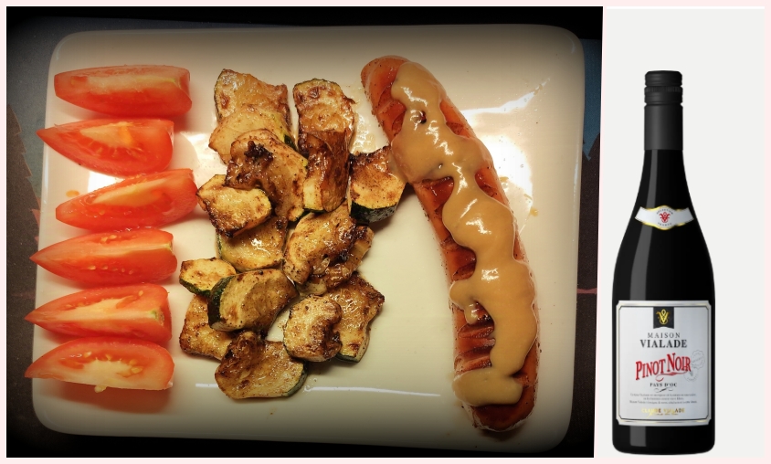 Nä,när inte huvud och händer samarbetar då kan det gå åt Pipan.Min plan var igår att det skulle bli en Snitzel på tallriken idag..När jag förberedde dagens mat,så var var min snitzel,,jo i frysen,f-n också..Kastade om mina tankar,i kylen hade jag två lunchkorvar,en Zucchini och lite tomat,kan det bli något..Klart det kan tyckte mina nyvakna hjärnceller,stek korven och zucchinin..Så fick det bli..När jag sedan såg resultatet på tallriken, inte blev jag så värst imponerad. Men för att göra anrättningen lite festligare så blev det ett glas Franskt rött ”Pinot Noir”2023.Så jädrans tokigt blev det ju inte,och vinet smakade riktigt bra..