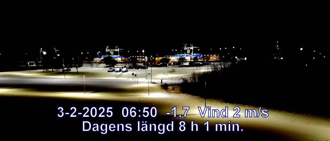 -3° C Vind 2 m/s Mulet, men troligen uppehåll Känns som-6° Lufttryck 1025 hPa Daggpunkt-3° Fuktigh 93 % Sikt 50000 m Soluppgång 08:03 Solnedgång 16:05 Dagens längd 8 h 1 min.