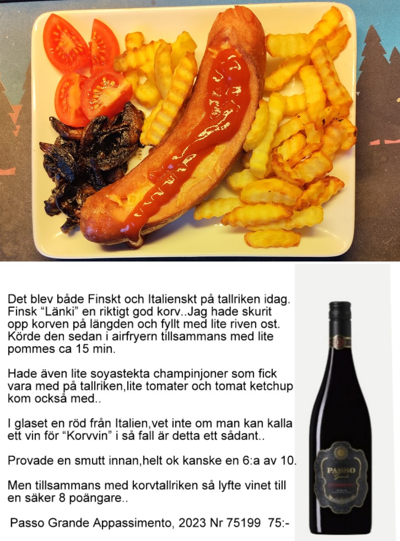 Länki har jag ätit flera gånger, då Janne var finländare, vad kul jag läste korvvin med betoning på ”o” och blev förundrad över att det finns finska viner, hahaha. Men sen såg jag ju att det var feltänk. det vinet har smakat på, men inte till korv så jag tyckte inte det var något höjdarvin, men helt ok.