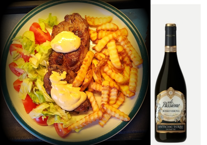 Idag så blev det Carré på tallriken,hade en bit i frysen som jag tog fram i morse,Skivade upp den när den tinat.Stekte ett par bitar,kryddade med salt,svartpeppar och chilipulver.Laddade airfryern med lite pommes som fick gå 22 min på 195*.Under tiden så fixade jag lite tomater och isbergs.Öppnade en pava Italienskt.Solo Passione 2022.Ett Smakrikt vin från regionen i Veneto i norra Italien.Det blev en bra Kombo.(vinet kan bli ett Favovin) Nr 71931 ><99:-Toppade anrättningen med lite Chilibea,den är det lite drag i..