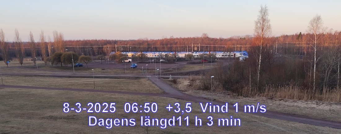 +3° C Vind 1 m/s Klart och uppehållsväder Känns som+3° Lufttryck 1013 hPa Daggpunkt+1° Fuktigh 92 % Sikt 13820 m Soluppgång 06:30 Solnedgång 17:33 Dagens längd 11 h 3 min.