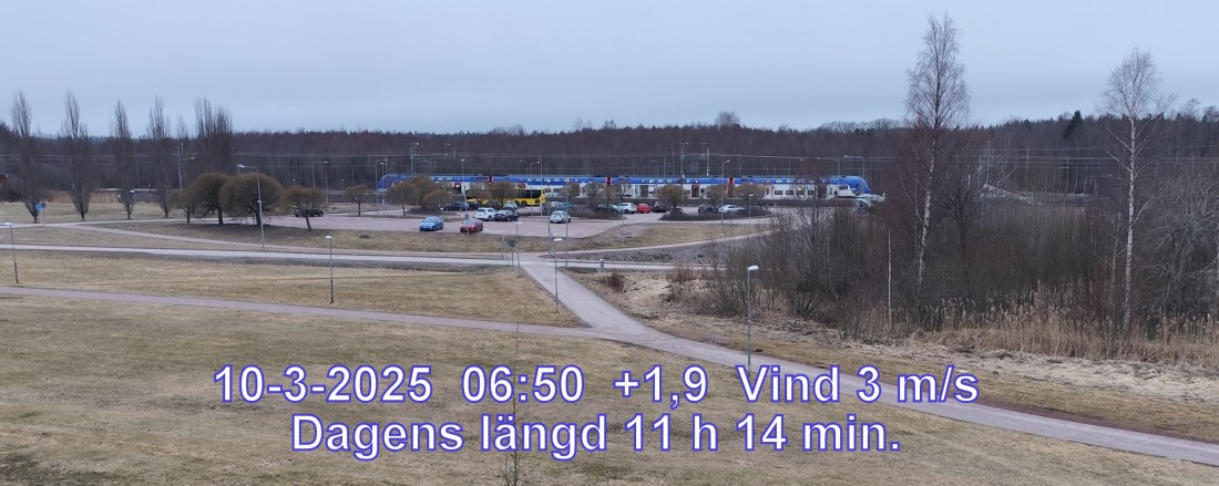 +1° C Vind 3 m/s Mulet, men troligen uppehåll Känns som-3° Lufttryck 1009 hPa Fuktighet 99 % Sikt 7670 m Soluppgång 06:24 Solnedgång 17:38 Dagens längd 11 h 14 min.