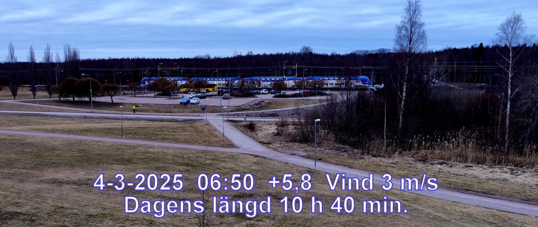 +1° C Vind 3 m/s Mulet, men troligen uppehåll Känns som-3° Lufttryck 1009 hPa Fuktighet 99 % Sikt 7670 m Soluppgång 06:24 Solnedgång 17:38 Dagens längd 11 h 14 min.