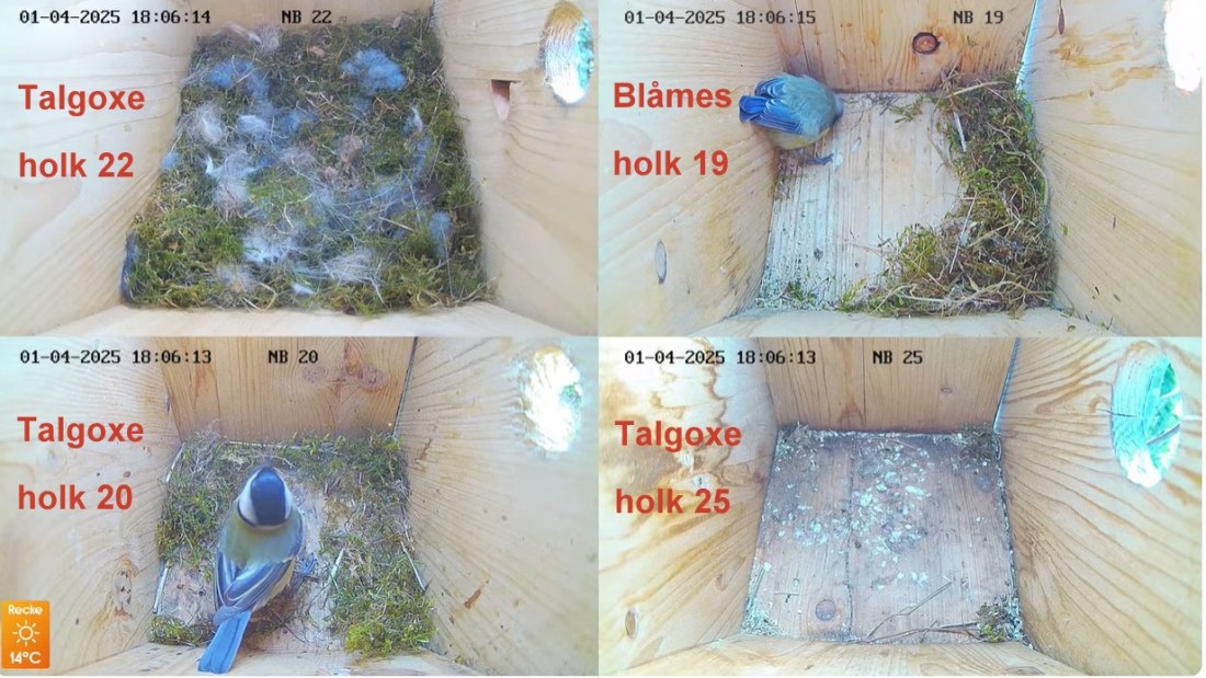 Först ut blir 4 fågelholkar som finns i Recke nordvästra Tyskland.Tre av holkarna är det aktivitet i,dom har kommit lite olika långt i boandet..