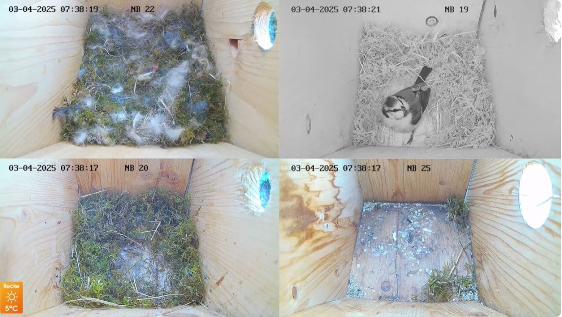 I Holkarna är det ganska lugnt,bara Blåmesen som är igång,kameran verkar ha tappat färgen så Blåmesen har nu blivit en ”Gråmes” hoppas att kameran fixas.
