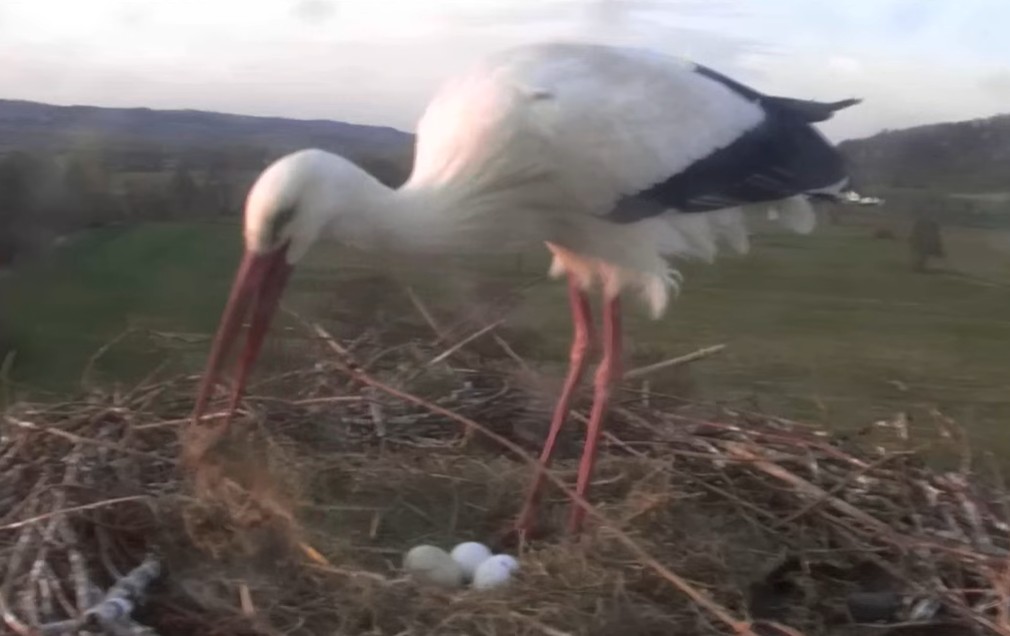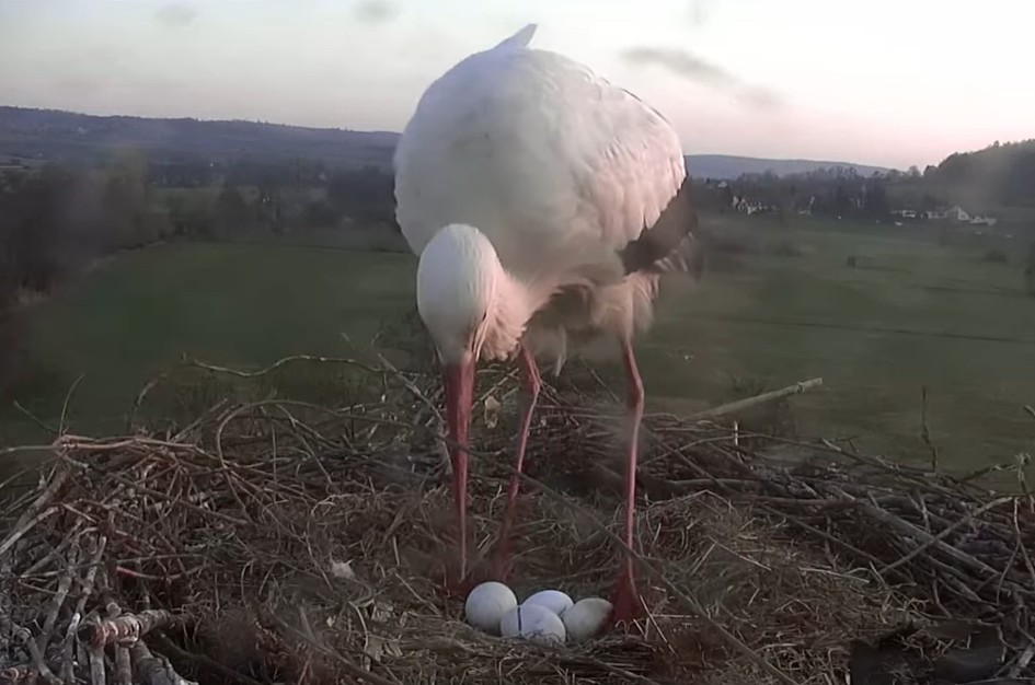 När jag hälsade på Storkarna i morse så kunde jag se 4 ägg i boet..