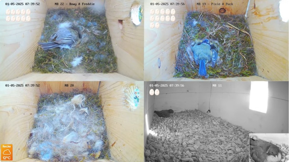 Här kommer en lägesrapport om vad som sker/skett i de objekt jag följer i naturen I de Tyska holkarna har inget förändrats sedan igår,möjligen att mesarna rullar sina ägg lite oftare..