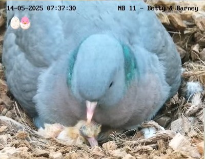 Nu till holkarna i Tyskland,,där fick jag se den första lilla duvungen igår kl 18:30.Läser i kommentarerna att ägget kläcktes 15.05,Betty har koll.