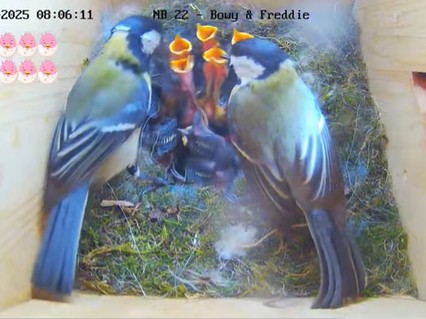 Nu till Bowy & Freddie i NB 22,där är det matning av de 9 ungarna som är det viktigaste,dom kommer med mat var och varannan minut..