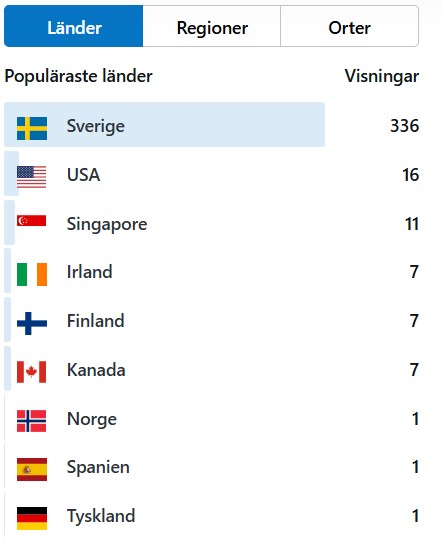 Det finns mycket olika statistik man kan få på WordPress. Jag gillar också att läsa statistiken över från vilka länder som varit inne på min blogg.