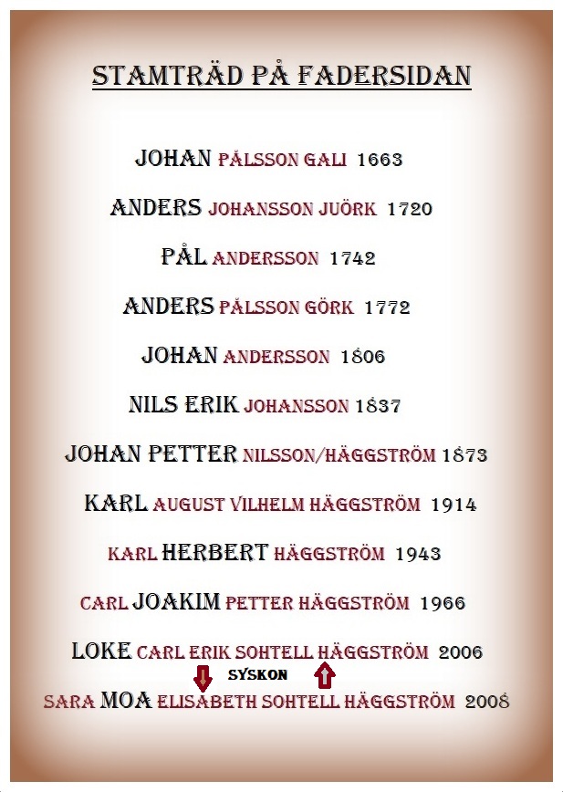 1. Tittar på stamträdet och funderar lite på hur det är idag, förr fick barnen ett namn efter någon släkting. År det så fortfarande?