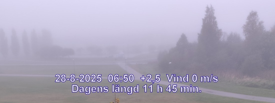 +4° C Vind 0 m/s Mulet, men troligen uppehåll Känns som+4° Lufttryck 1034 hPa Daggpunkt+4° Fuktigh 99 % Sikt 29503 m Soluppgång 06:52 Solnedgång 18:26 Dagens längd 11 h 34 min.
