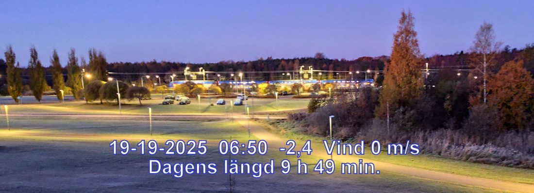-3° C Vind 0 m/s Klart och uppehållsväder Känns som-3° Lufttryck 1018 hPa Daggpunkt-3° Fuktigh 96 % Sikt 50000 m Soluppgång 07:40 Solnedgång 17:29 Dagens längd 9 h 49 min.