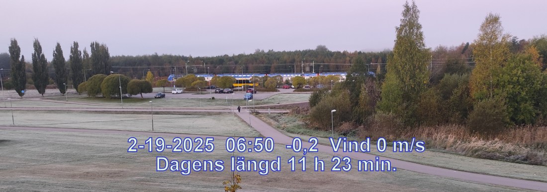 0° C Vind 0 m/s Mest klart och uppeh. Lufttryck 1028 hPa Fuktigh 99 % Sikt 876 m Soluppgång 06:59 Solnedgång 18:17 Dagens längd 11 h 17 min.
