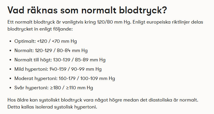 Blodtrycket som tidigare legat lite högt,men nu tack vare medicinering ligger på en bra nivå..