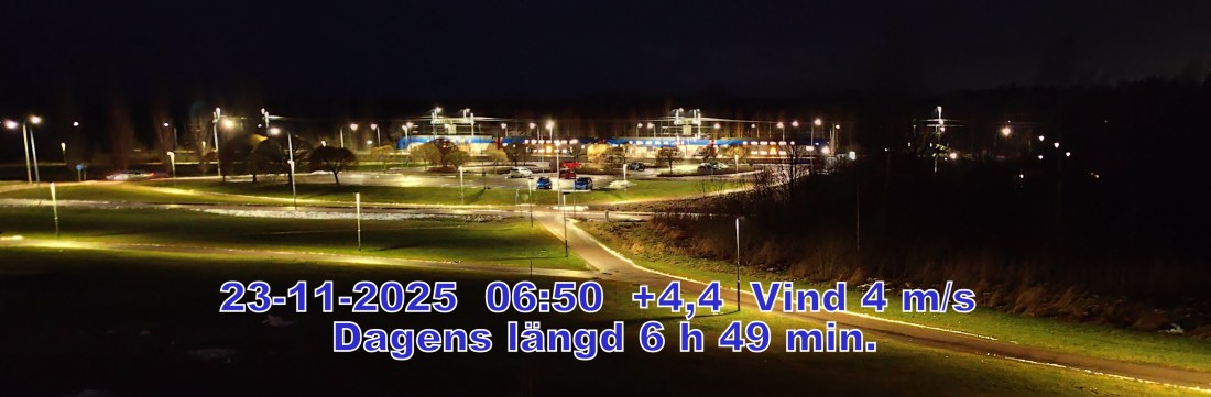 +4° C Vind 4 m/s Mulet, men troligen uppeh, Lufttryck 1007 hPa Daggpunkt+2° Fuktighet 92 % Sikt 21180 m Soluppgång 08:11 Solnedgång 15:01 Dagens längd 6 h 49 min.