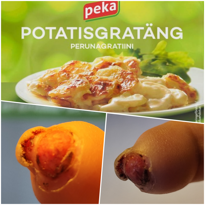 Ja det är så sant..Hade en potatisgratäng i ugnen,tyckte den gräddades lite ojämt,hade graderna på 225*.Skulle vrida formen lite och,slarvade lite med grytlappen,av någon jä-la anledning lyckades jag doppa pekfingret i gratängen..Vilket inte var så lyckat,detta var igår,känns bättre idag..