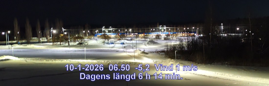 -8° C Vind 0 m/s Mulet, men troligen uppehåll Känns som-8° Lufttryck 1017 hPa Daggpunkt-9° Fuktighet 93 % Sikt 39067 Soluppgång 08:46 Solnedgång 15:12 Dagens längd 6 h 25 min.