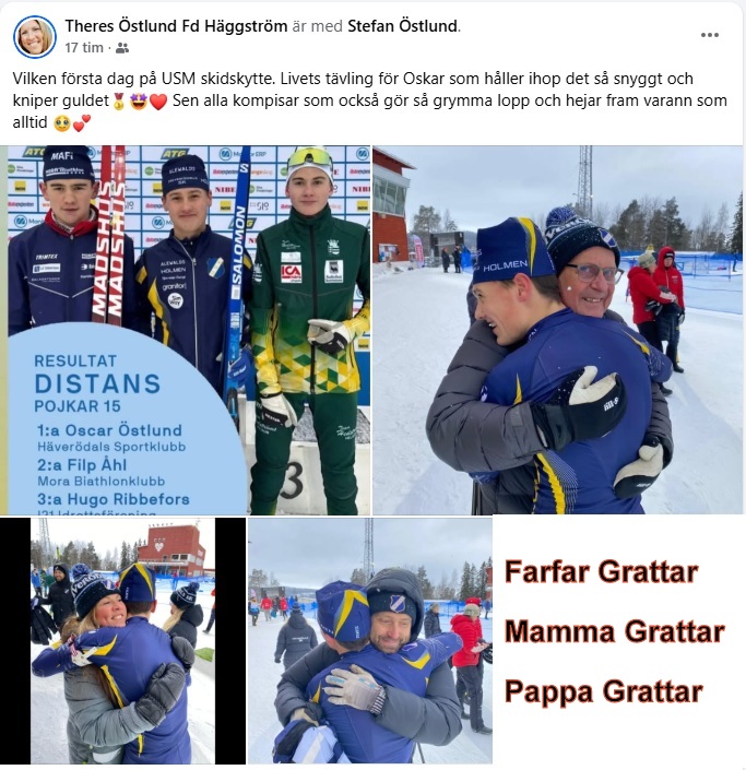 Ja verkligen,min brors dotterson slog till,det var ju riktigt roligt.Nu undrar ju vän av ordning,vad var det som Oscar gjorde.Jo han vann Distansloppet i Ungdoms SM Skidskytte Distans som avgjordes i Östersund för pojkar 15 år..Jättegrattis..