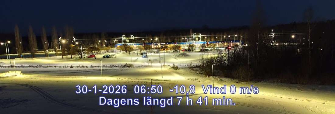 -12° CVind 0 m/s Molnigt, men troligen uppehå Känns som-12° Lufttryck 1023 hPa Daggpunkt-13° Fuktigh 92 % Sikt 18972 m Soluppgång 08:13 Solnedgång 15:54 Dagens längd 7 h 41 min.