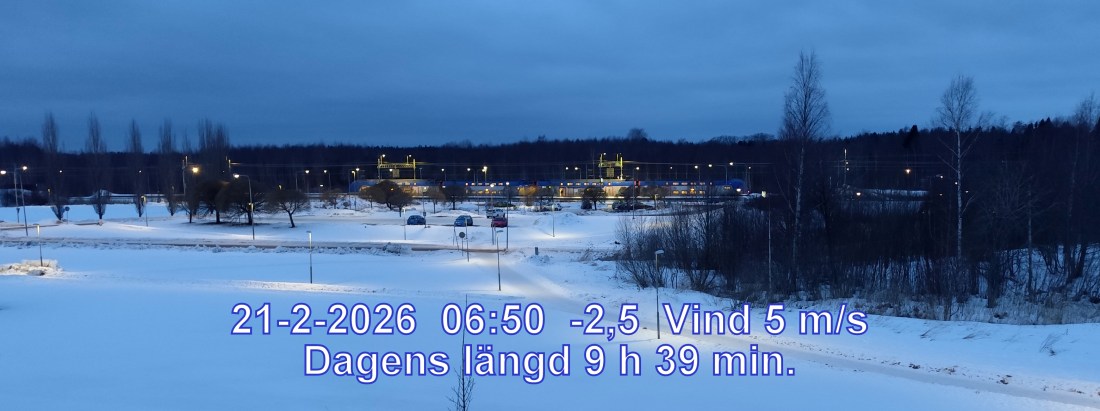 -2° C Vind 5 m/s Mulet, men troligen uppehåll Känns som-8° Lufttryck 1002 hPa Daggpunkt-5° Fuktigh 80 % Sikt5 0000 m Soluppgång 07:15 Solnedgång 16:54 Dagens längd 9 h 39 min.
