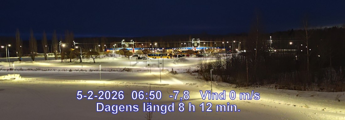 -8° C Vind 0 m/s Mulet och något snö Känns som-8° Lufttryck 1021 hPa Daggpunkt-9° Fuktigh 90 % Sikt 16543 m Soluppgång 07:58 Solnedgång 16:11 Dagens längd 8 h 12 min.