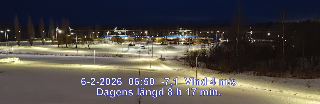 -7° C Vind 4 m/s Mulet, men troligen uppehåll Känns som-14° Lufttryck 1016 hPa Daggpunkt-10° Fuktigh 80 % Sikt 35407 m Soluppgång 07:56 Solnedgång 16:13 Dagens längd 8 h 17 min.