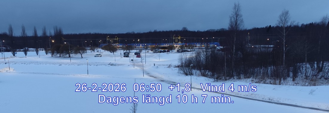 +1° C Vind 4 m/s Mulet och duggregn Känns som-3° Lufttryck 1010 hPa Fuktigh 97 % Sik t7499 m Soluppgång 07:00 Solnedgång 17:07 Dagens längd 10 h 7 min.
