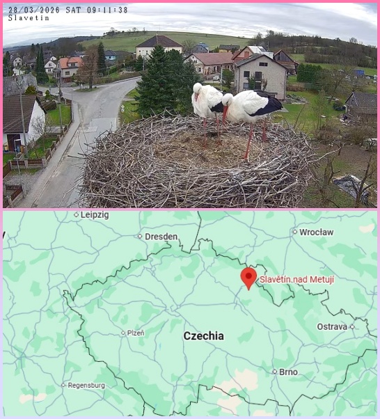 Kollar läget hos Storkarna i Tjeckien.Slavětín nad Metuji är en by i Tjeckien. Den ligger i den nordöstra delen av landet, 120 km öster om huvudstaden Prag. Slavětín nad Metuji ligger 271 meter över havet och antalet invånare är 227.