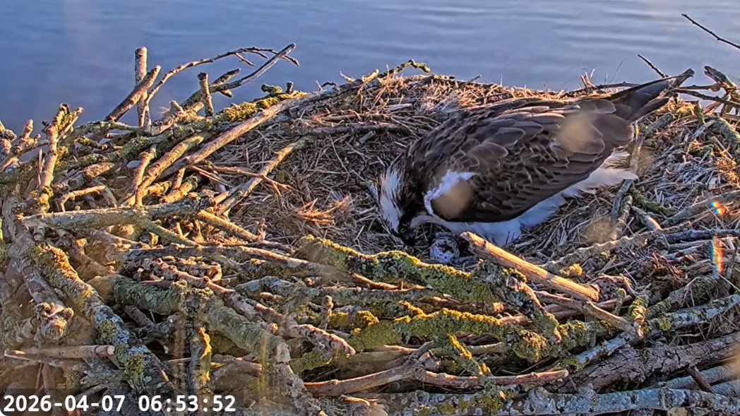 Nu till England och Fiskgjusarna,där är det pappa Blue 33 som sköter om ägget.