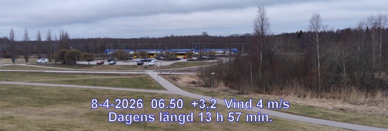 +3° C Vind 4 m/s Mulet, men troligen uppehåll Känns som-1° Lufttryck 1033 hPa Fuktighet 86 % Sikt 50000 m Soluppgång 05:54 Solnedgång 19:51 Dagens längd 13 h 57 min.