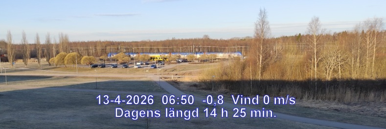 -4° C Vind 0 m/s Klart och uppehållsväder Känns som-4° Lufttryck 1027 hPa Daggpunkt-4° Fuktighet 94 % Soluppgång 05:39 Solnedgång 20:04 Dagens längd 14 h 25 min.