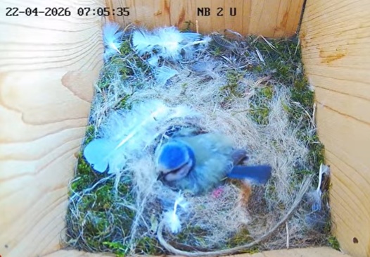Kikar in till Blåmesen där ligger Bluna trygg på sina 10 ägg.