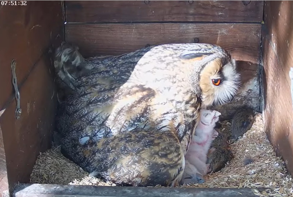 Hos Hornugglan i Ungern,där är det frukost på G,ser 4 hungriga ungar.