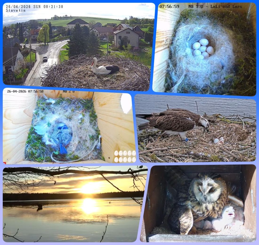 Rutan kollar Älgarna i Ångermanland,där har 12 st Älgar smygsimmat över älven under natten,2 syns på bilden,Totalt till nu har 32 älgar simmat.Hos Storken i Tjeckien är läget lugnt.Talgoxen LaLi i Tyskland har nu 7 ägg i boet.Bluna,Blåmesen ligger på sina 10 ägg hela tiden hon är inte borta många minuter..Blue 33 har precis bytt av Maya,han tar nu över skötseln av de 4 äggen.Hornugglan som troligen kallas Mrs Leo brer ut sina vingar över sina små,jag har fortfarande bara sett 4 ungar……Forts följer