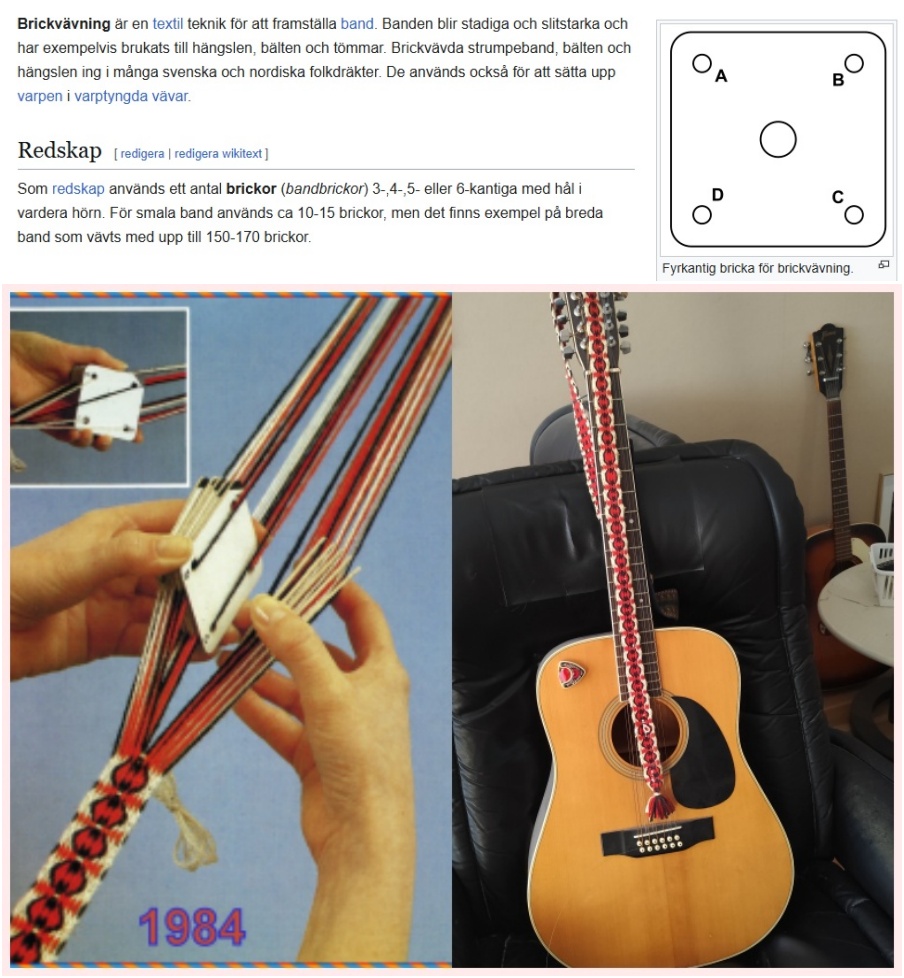 Jag sitter vid datorn och kollar på gamla bilder,ibland så dyker det upp bilder som har fallit ur minnet.Här kommer ett exempel på detta..Bilden är från 1984 och visar hur jag väver ett band som sedan hamnade på min 12 strängade gitarr.