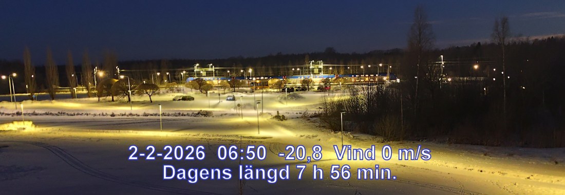 -18° C Vind 0 m/s Mulet och något snö Känns som-18° Lufttryck 1030 hPa Daggpunkt-20° Fuktigh 84 % Sikt 50000 m Soluppgång 08:03 Solnedgång 16:05 Dagens längd 8 h 1 min.