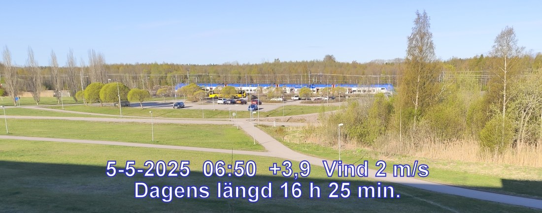 +5° C Vind 0 m/s Klart och uppehållsväder Känns som+5° Lufttryck 1019 hPa Daggpunkt-1° Fuktigh 62 % Sikt50000 m Soluppgång 03:59 Solnedgång 21:35 Dagens längd 17 h 36 min.